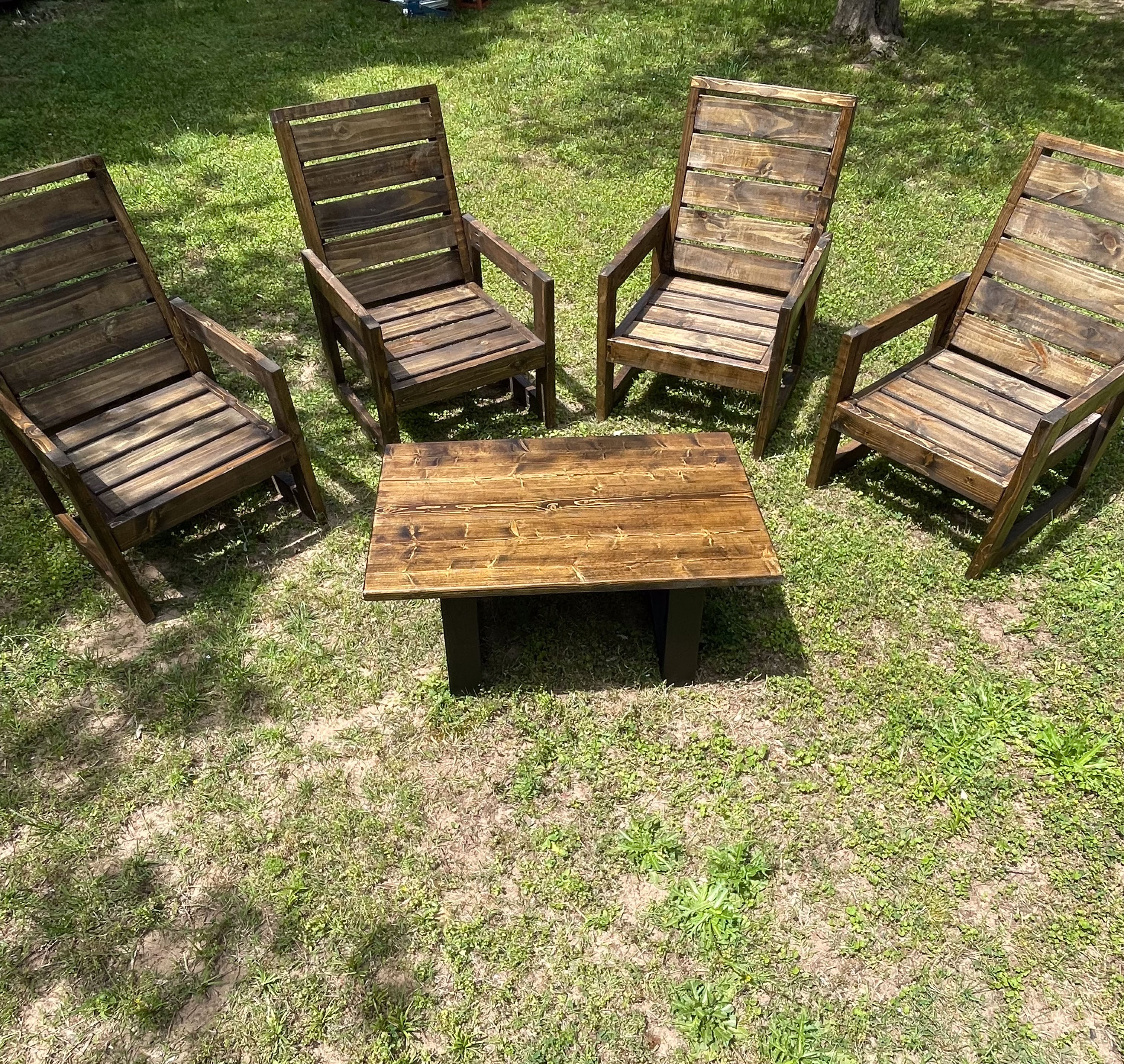 Relax in handcrafted comfort with our custom outdoor chair sets, designed to withstand the elements while bringing warm, welcoming style to your patio, porch, or backyard.